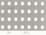 Disposição reta: Nesse tipo de perfuração, a área aberta obtida sempre é menor em relação à disposição alternada, por isso sua utilização é pouco recomendada em processos industriais. Sendo, no entanto, largamente utilizada em situações onde a estética e o perfeito acabamento das margens se fazem necessários.